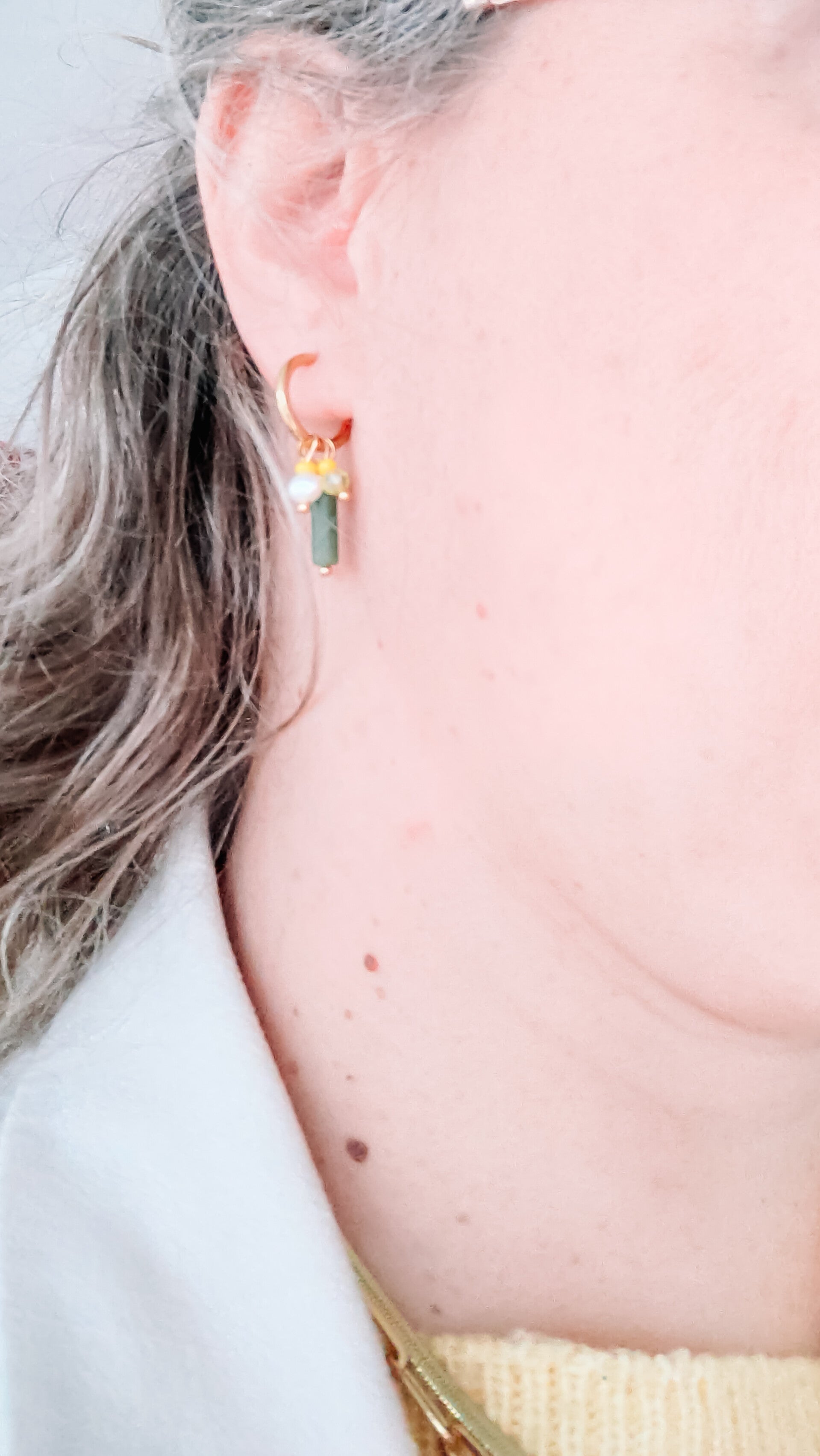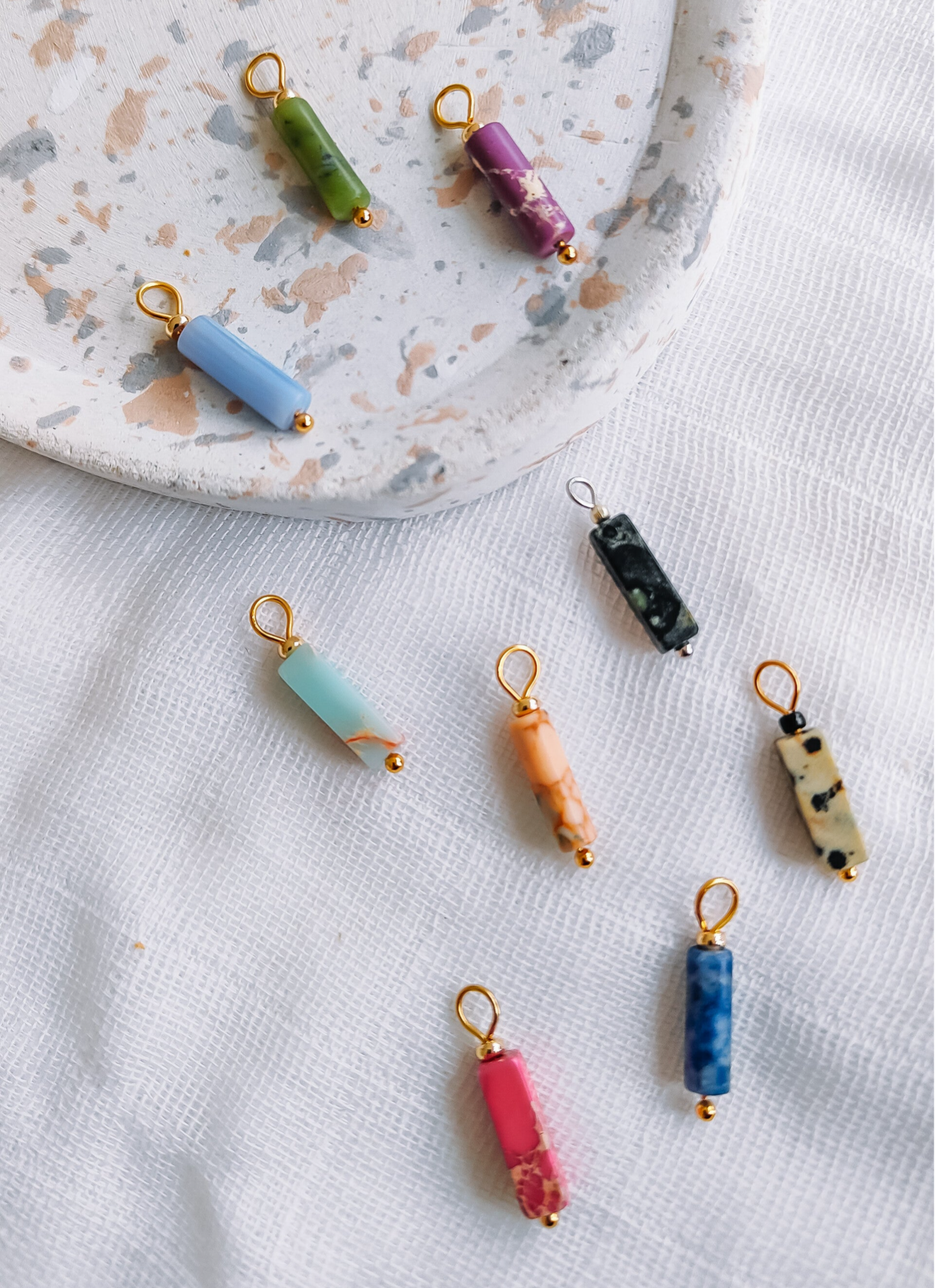 Natuurstenen kralen met stainless steel afwerking. Elke natuursteen is een beetje anders, de bedel kan dus lichtjes afwijken van degene op deze foto.